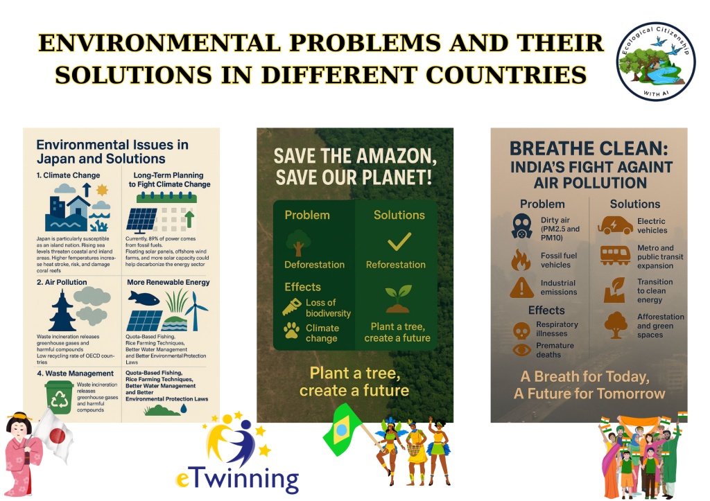 Yapay zeka destekli ekolojik vatandaşlık konusunda öğrencilerimizi bilinçlendirmeyi amaçlayan eTwinning projemizin etkinliklerini tamamladık. 11 farklı okulla yürüttüğümüz projemizde çevre bilinci olan, hayvanları koruyan , çevresel konulara yapay zekayı da kullanarak çözüm üretmeye çalışan insanlar yetiştirmeyi hedefledik. Yaptığımız etkinliklerle hem eğlendik hem öğrendik.